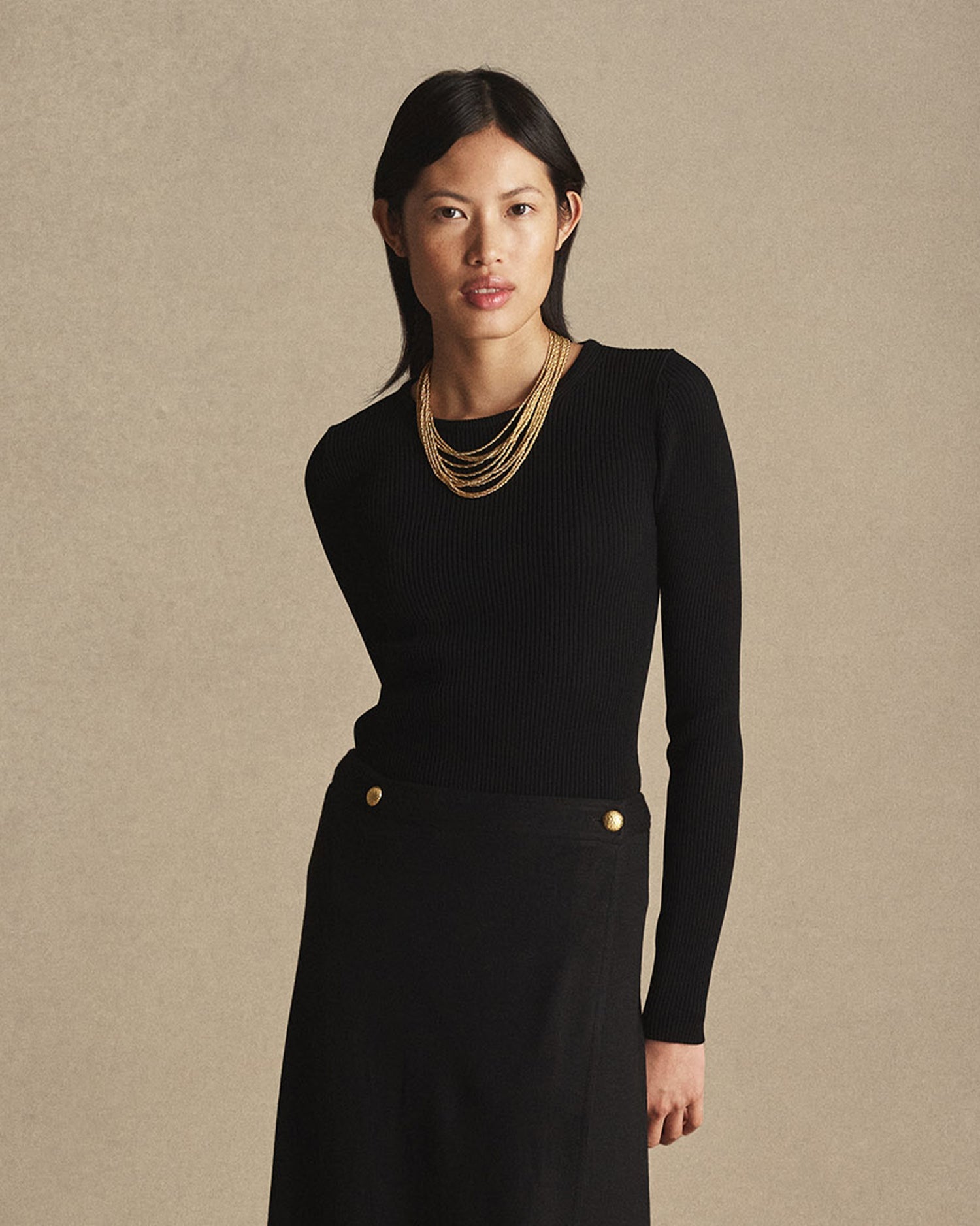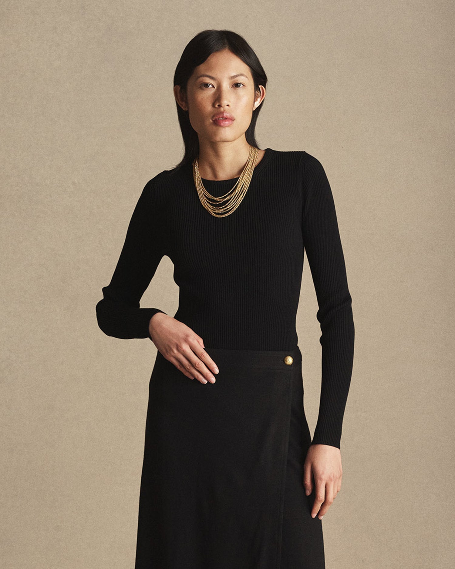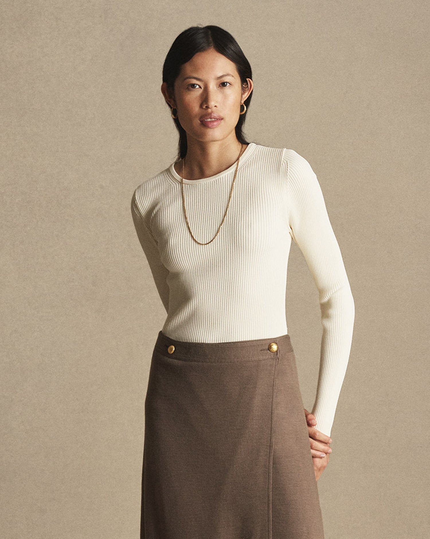 Georgia Rib Knit Long Sleeve Tee - Off White
