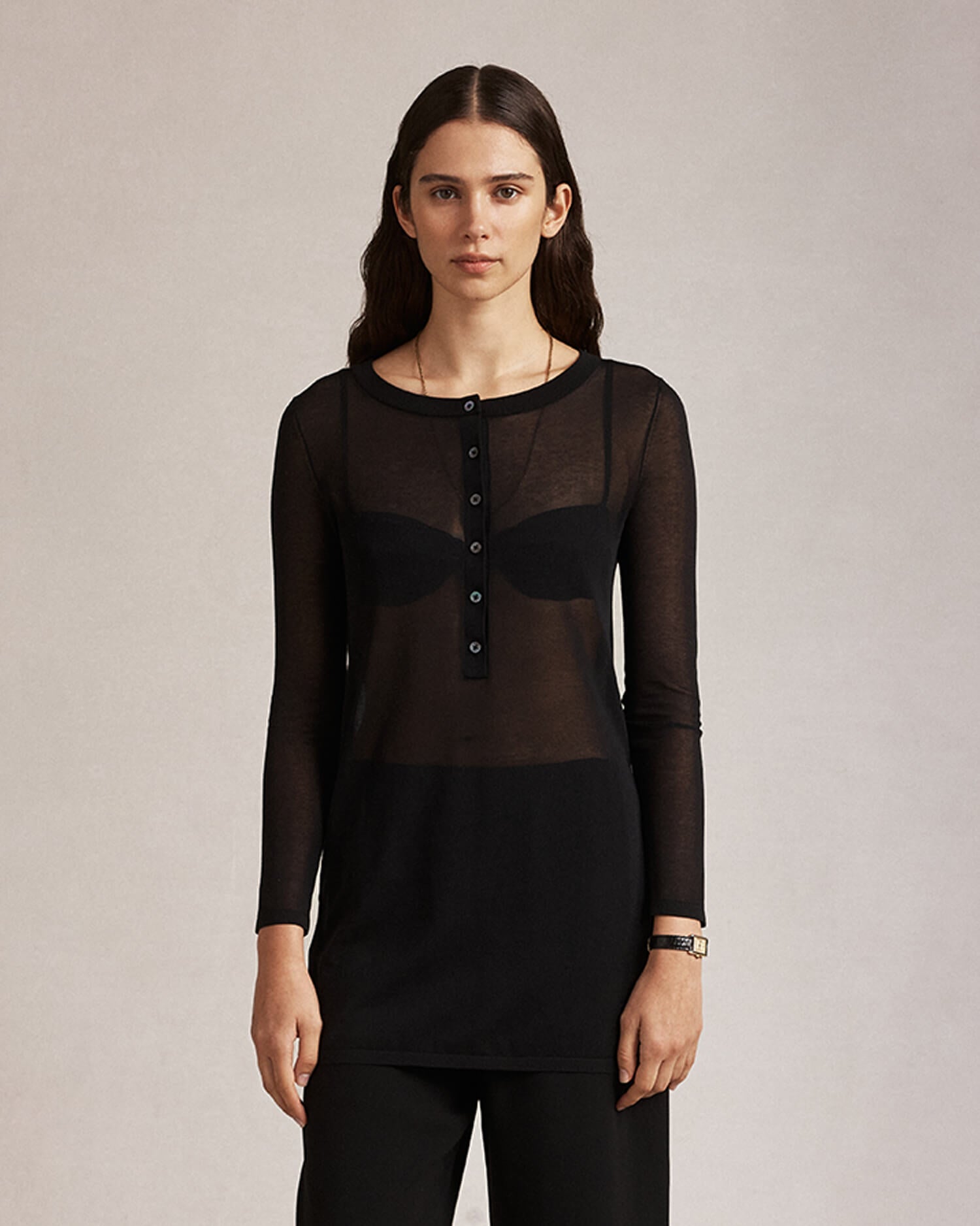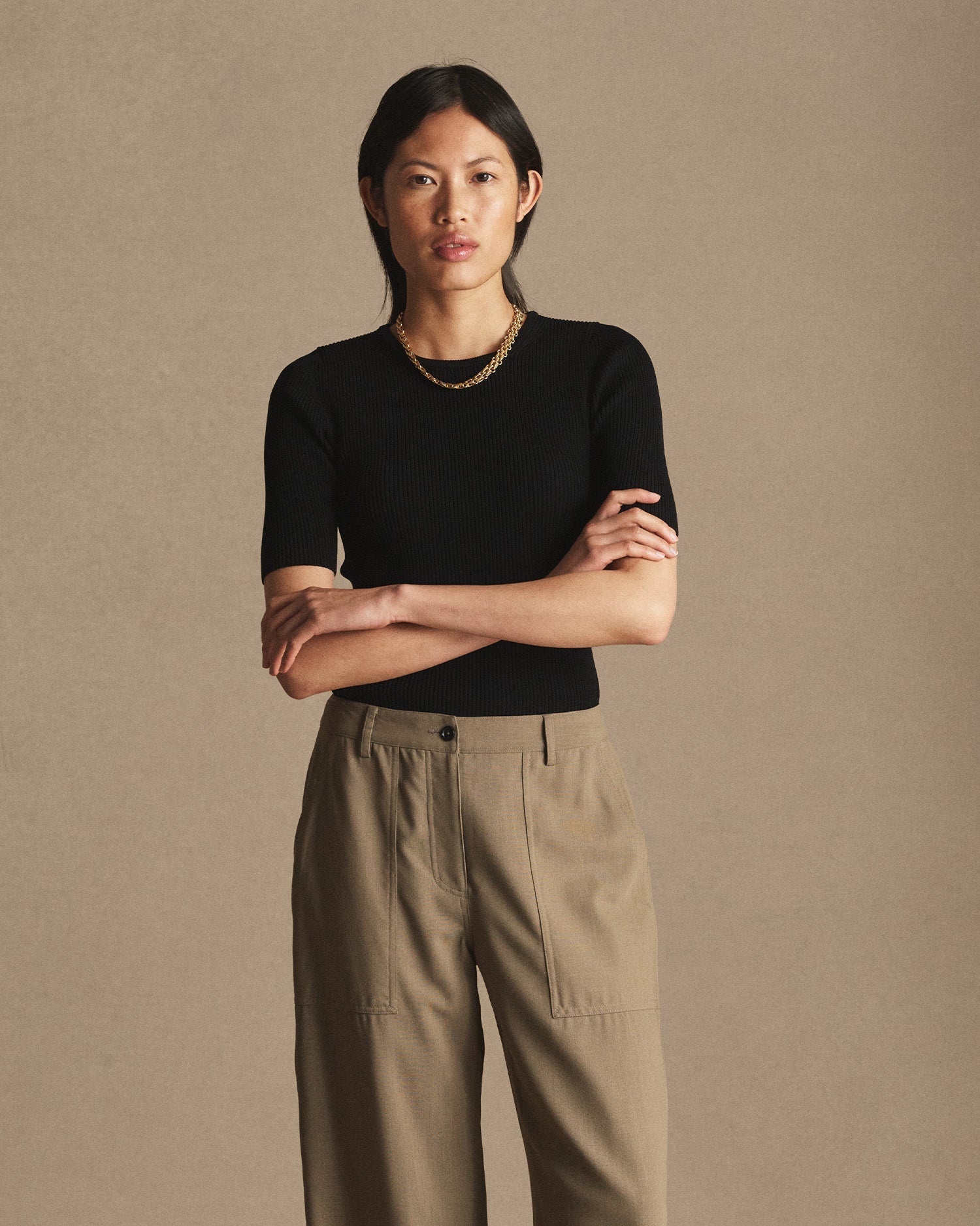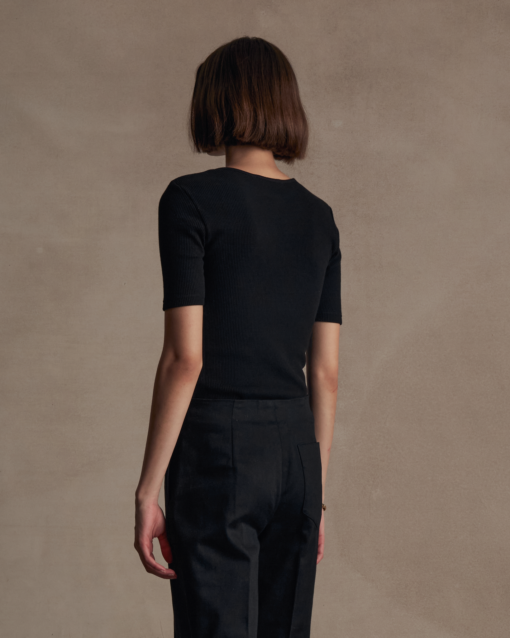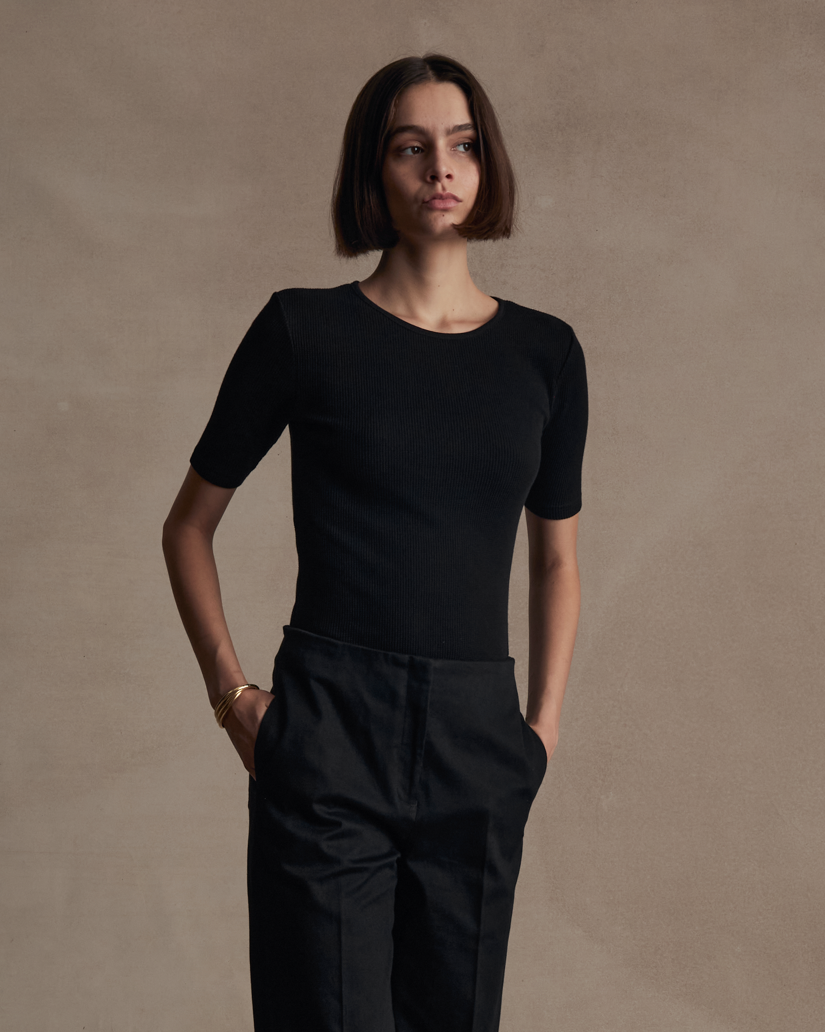 Georgia Rib Knit Long Sleeve Tee - Off White