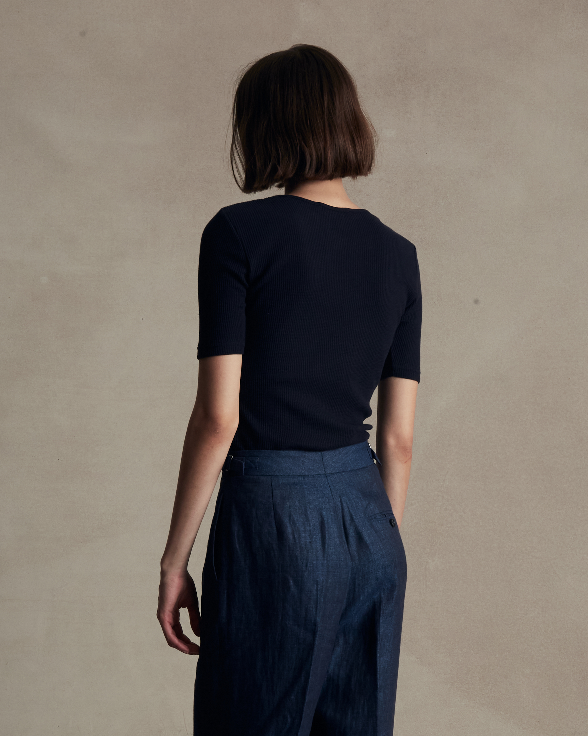 Navy Waffle Top
