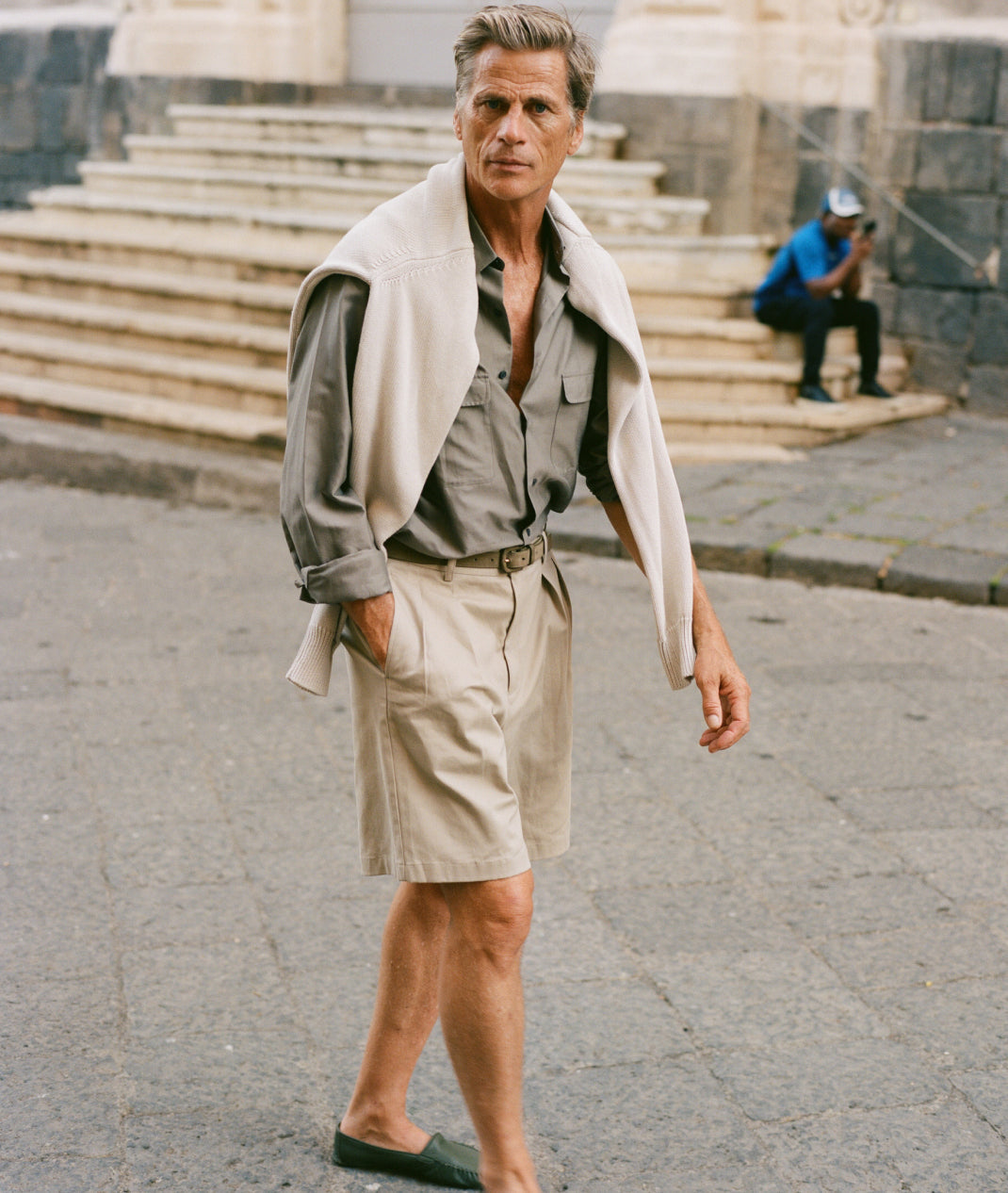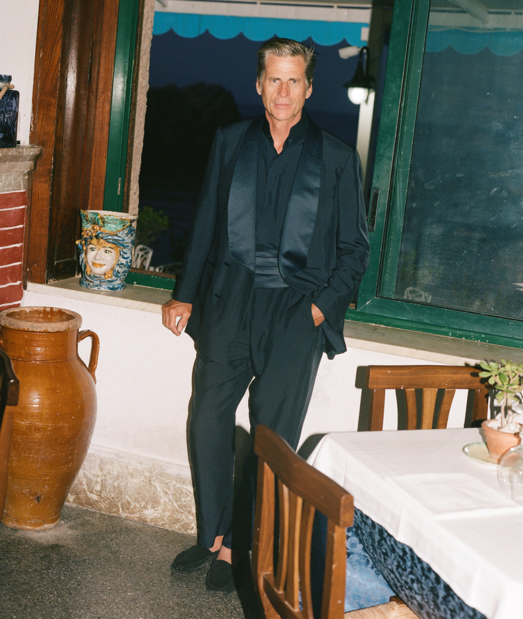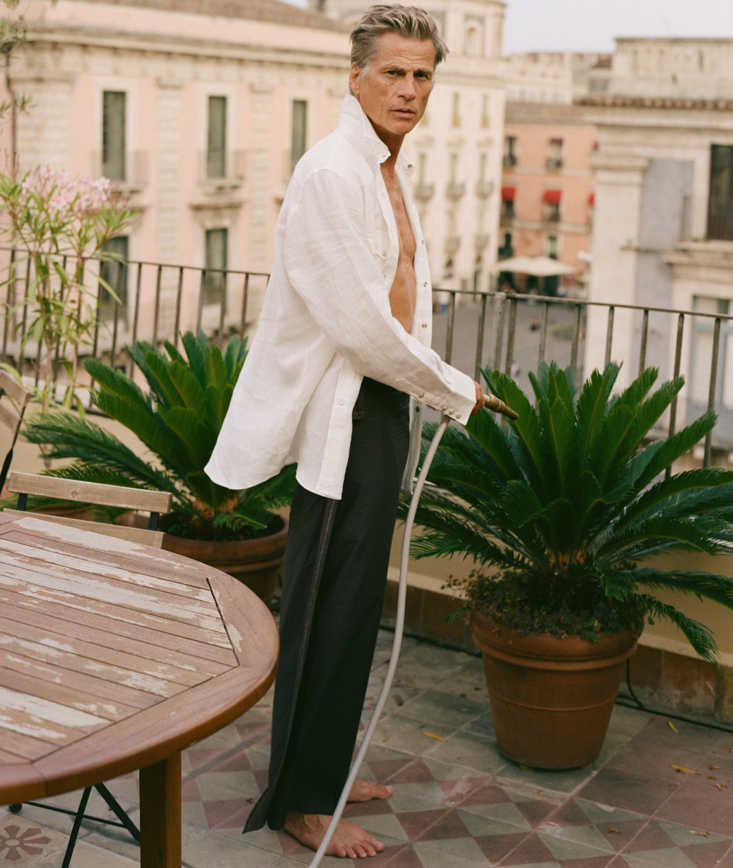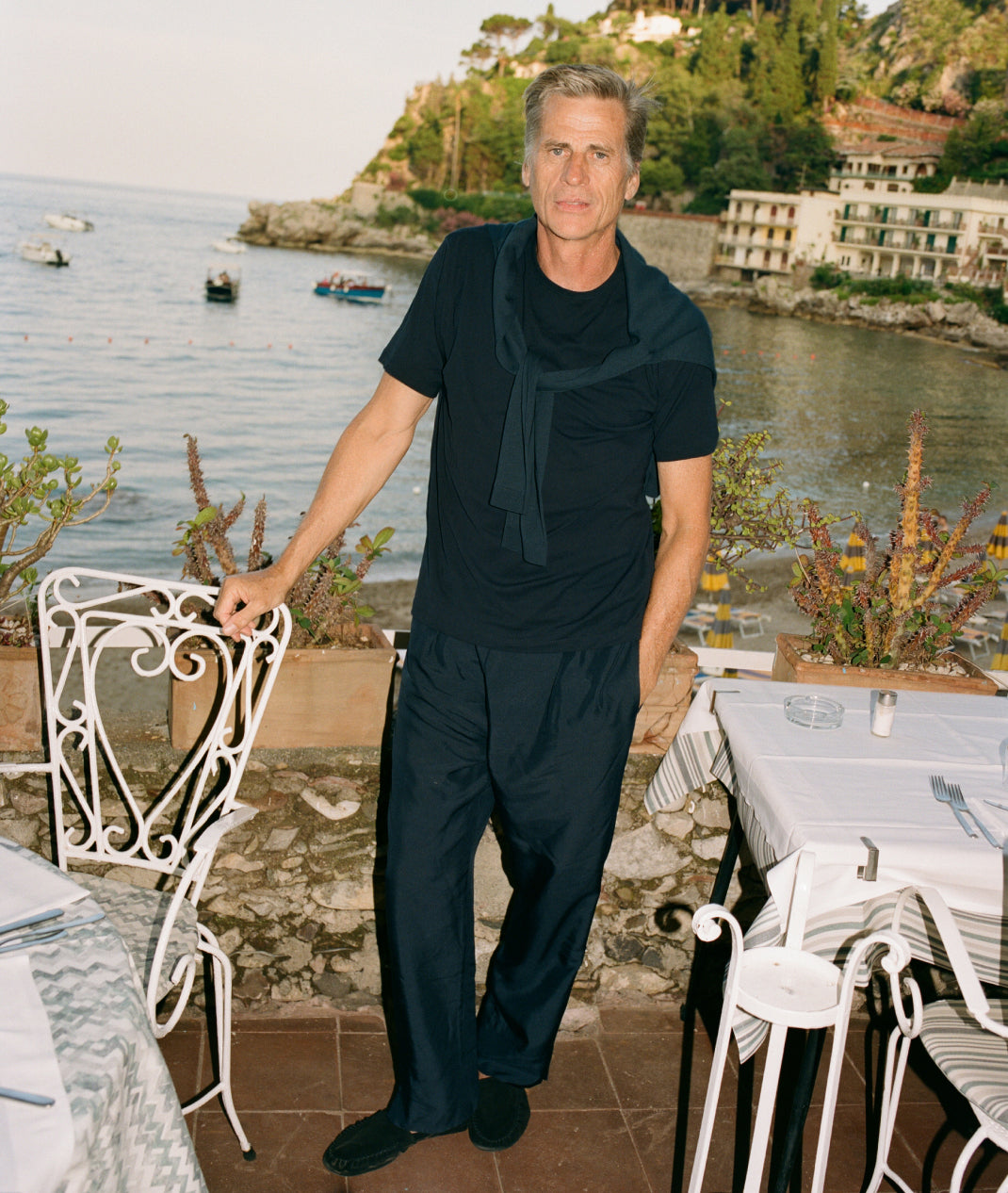 In between cigarettes, beers, espressos, horse, salty lemon drinks, oysters, negronis, sardines, lots of swims and a few vinos our favourite ‘proper man’ Mark van der Loo managed to model some of our spring summer collection. James Harvey-Kelly snapped and clicked away as Mark entertained and Patrick swooned. Day two we trundled around Taormina dodging White-Lotus-dreamers and some seriously impressive tans, some entering the Pantones of ‘coffee’ or ‘basal cell carcinoma’. It was tremendous fun.