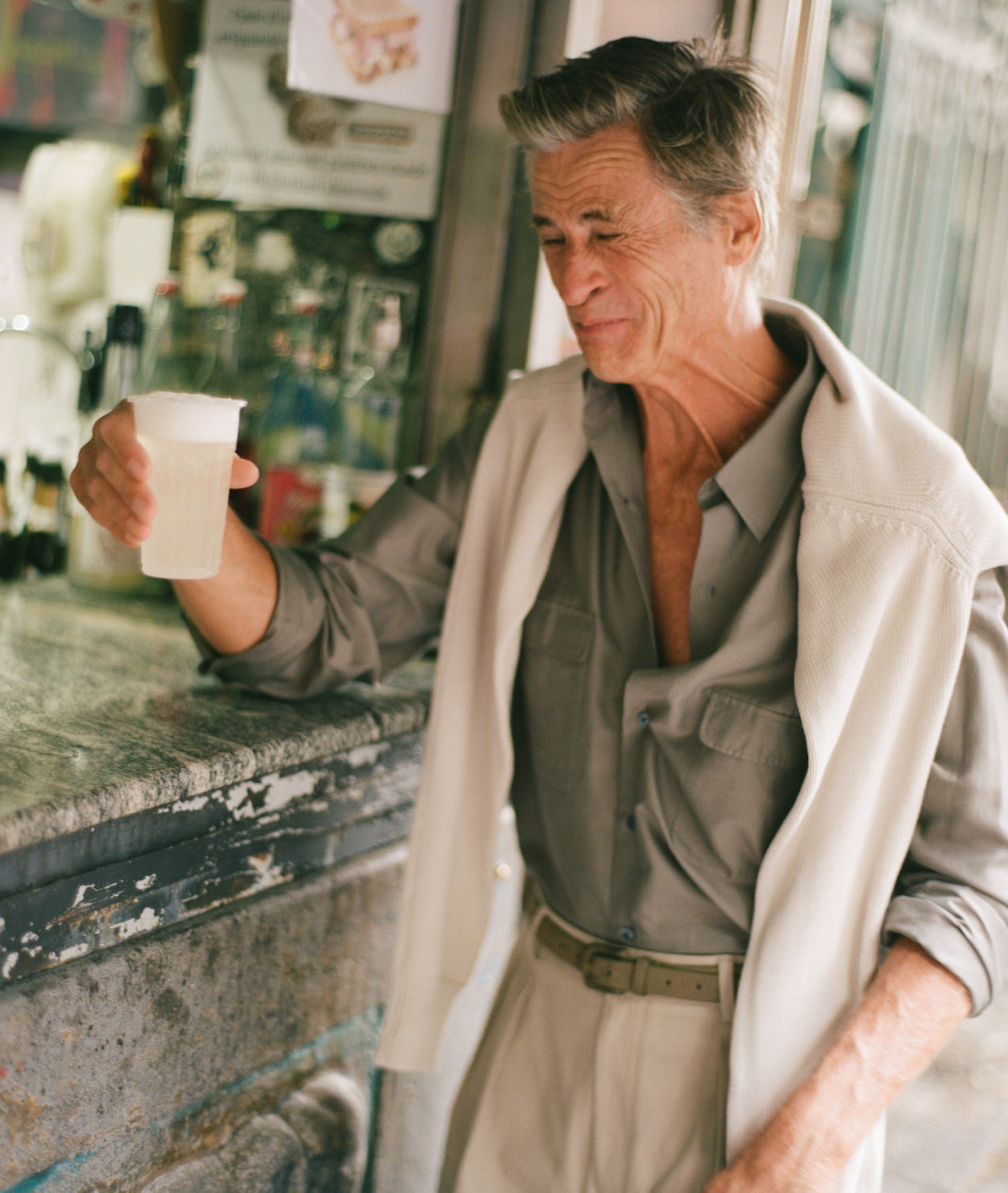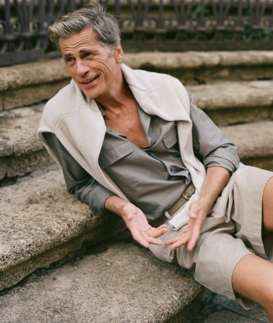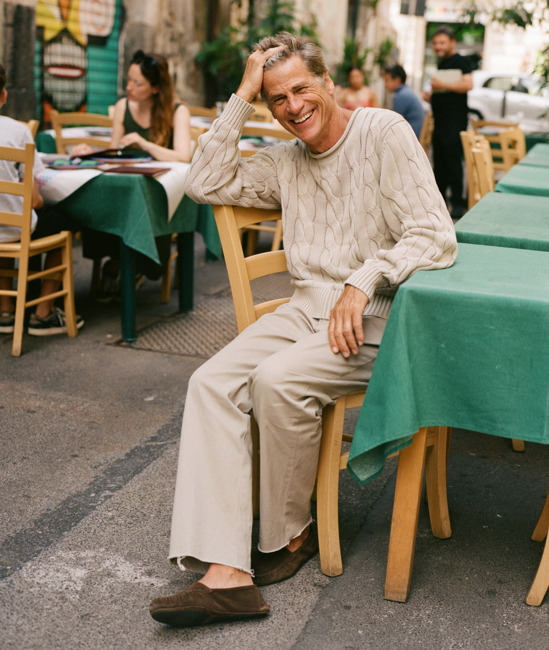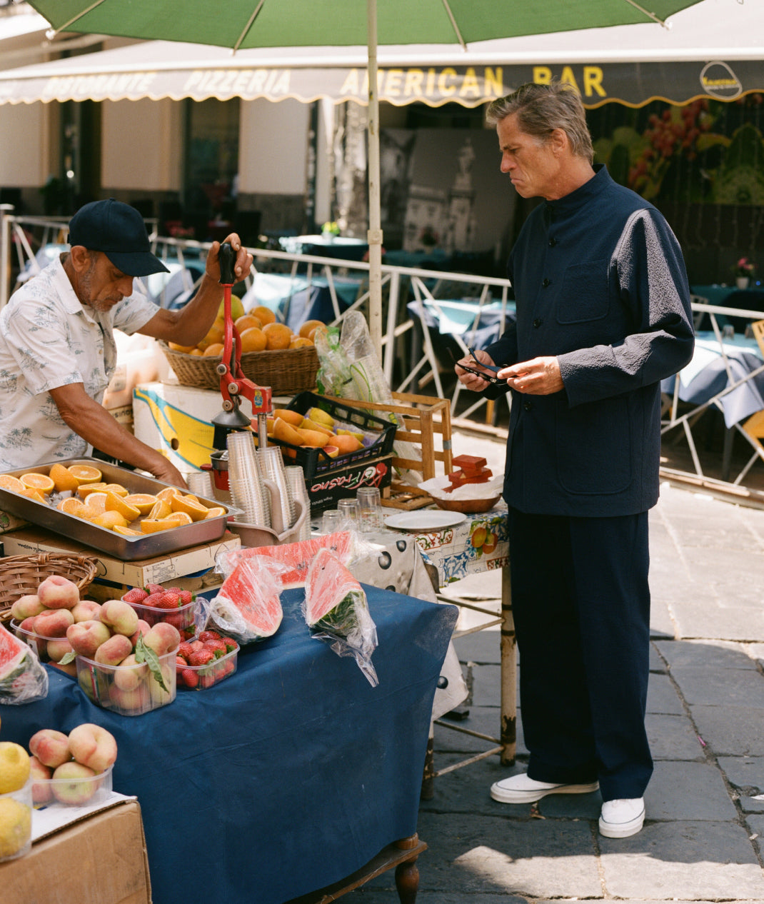 In between cigarettes, beers, espressos, horse, salty lemon drinks, oysters, negronis, sardines, lots of swims and a few vinos our favourite ‘proper man’ Mark van der Loo managed to model some of our spring summer collection. James Harvey-Kelly snapped and clicked away as Mark entertained and Patrick swooned. Day two we trundled around Taormina dodging White-Lotus-dreamers and some seriously impressive tans, some entering the Pantones of ‘coffee’ or ‘basal cell carcinoma’. It was tremendous fun.