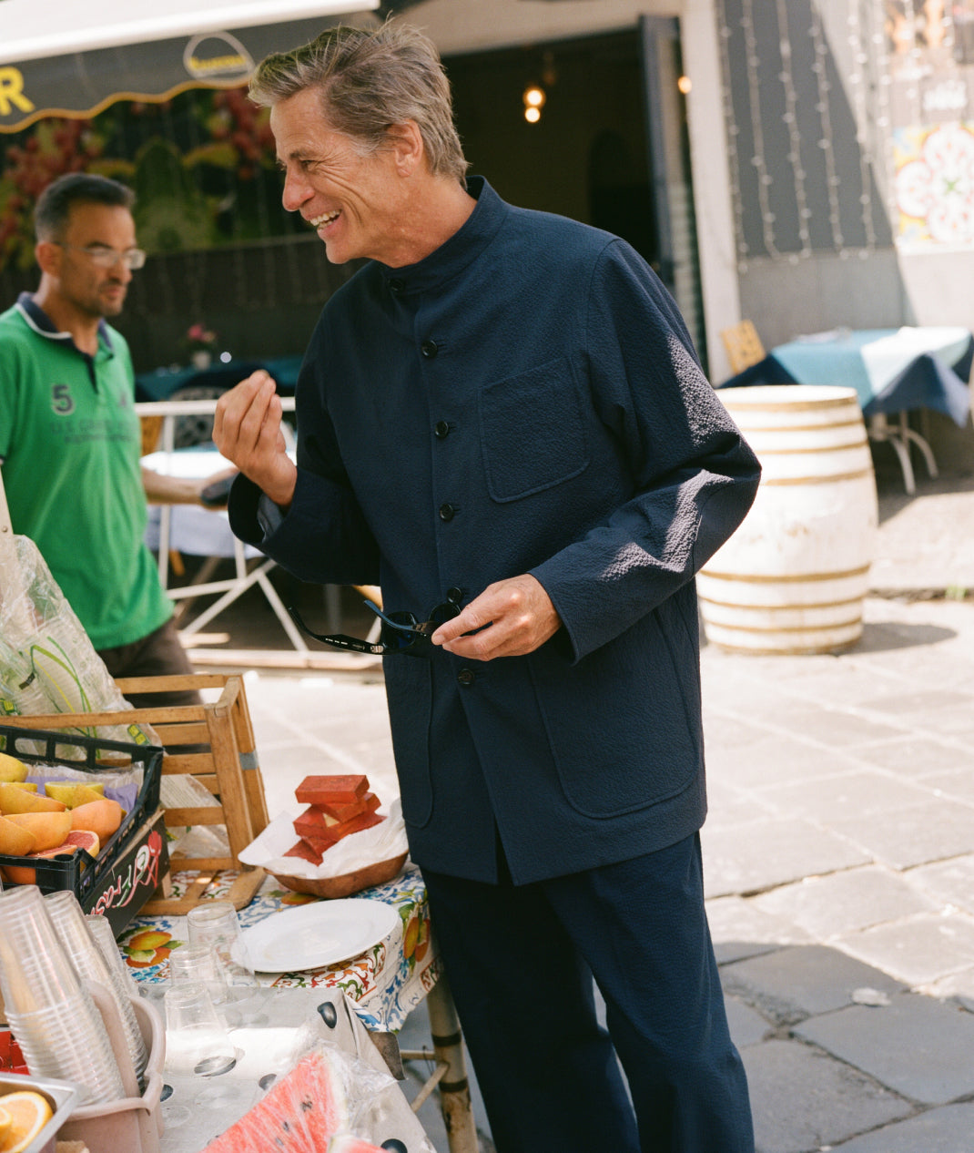 This spring summer capsule features slick silk-cotton “Bonnard” shirts, slack suits in a tissue-light cotton-silk seersucker (also in a Corbu jacket), canvas carpenter shorts and very chic canvas five pockets and the spunky “Rojin” pop over with embossed ying-yang on the back because were are into that stuff, balance, live slow - die old etc. There are the new extra-nautical rope print swimmers and some featherweight short sleeve seersucker shirts with nifty internal chest pocket so your phone doesn’t fall out when you put the toilet seat down (you do that right?). There are plenty more great things, and you can see the whole lot packaged into a little ‘zine’ we have compiled titled Mark in Catania. We hope you enjoy it as much as we did. Thanks Mark, Thanks JHK and crew. Grazie mille. Arrivederci.