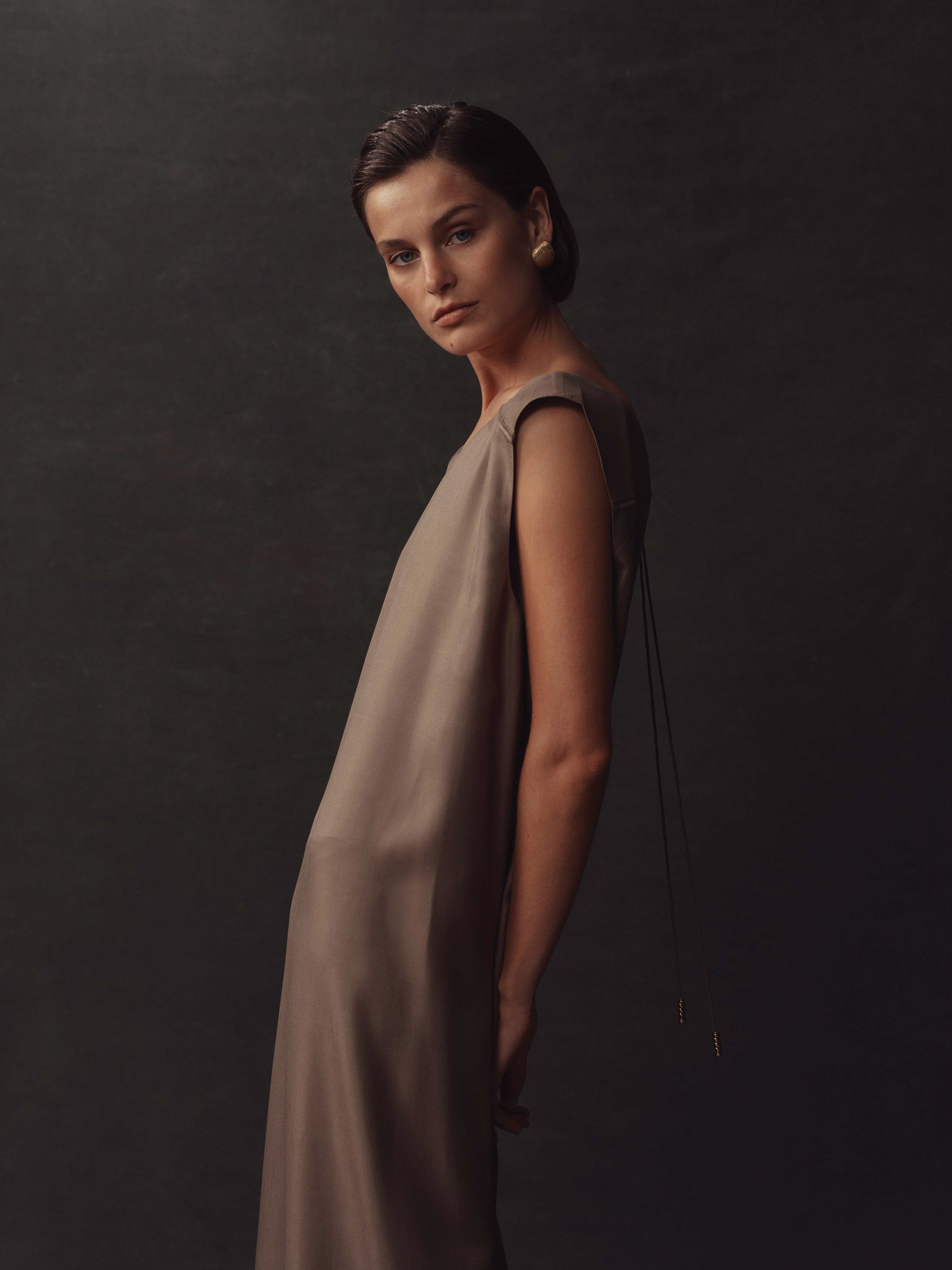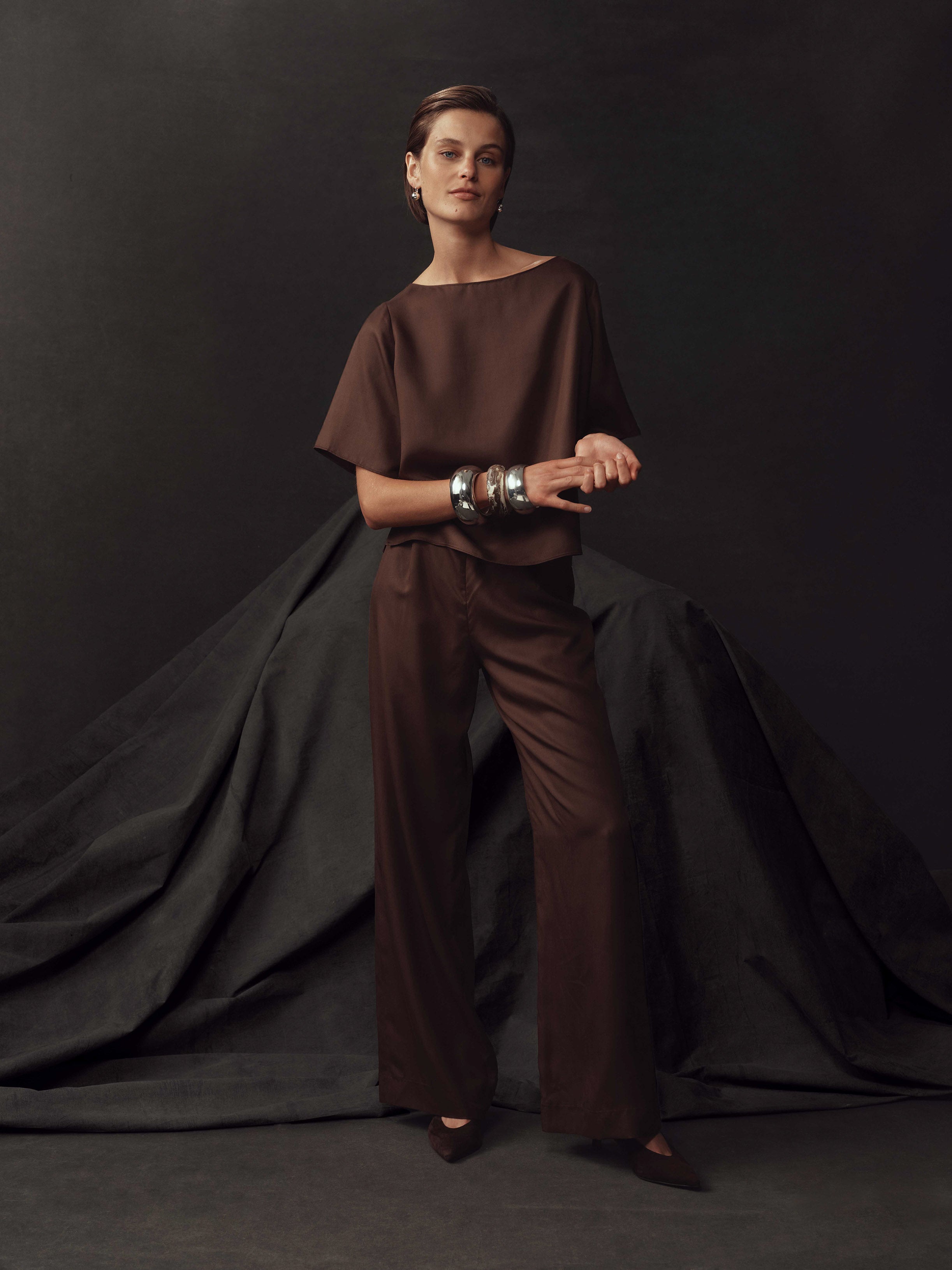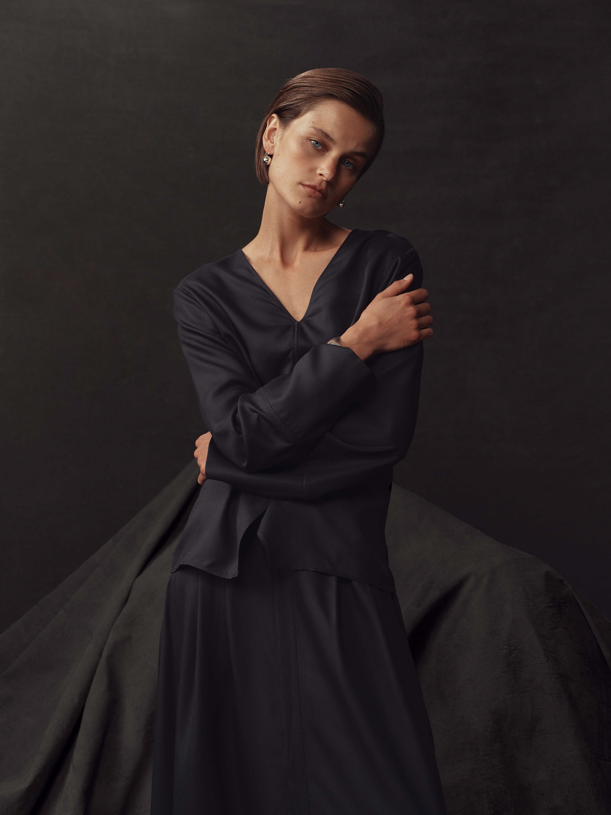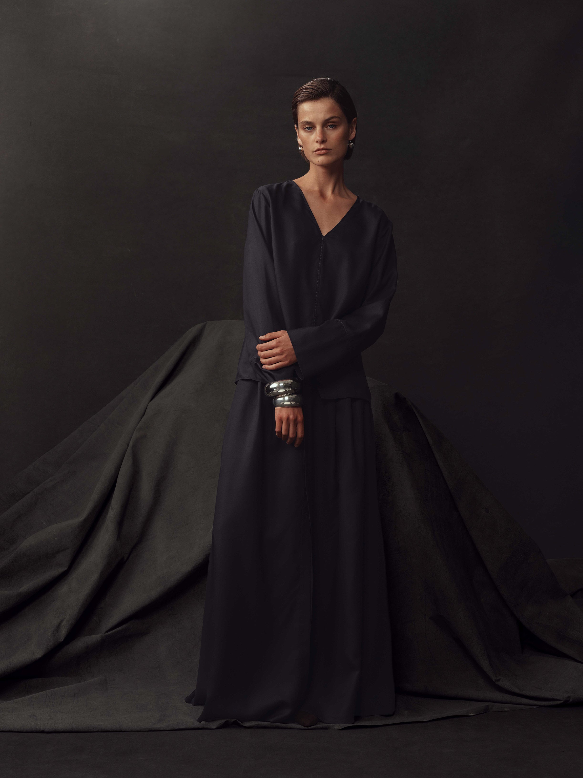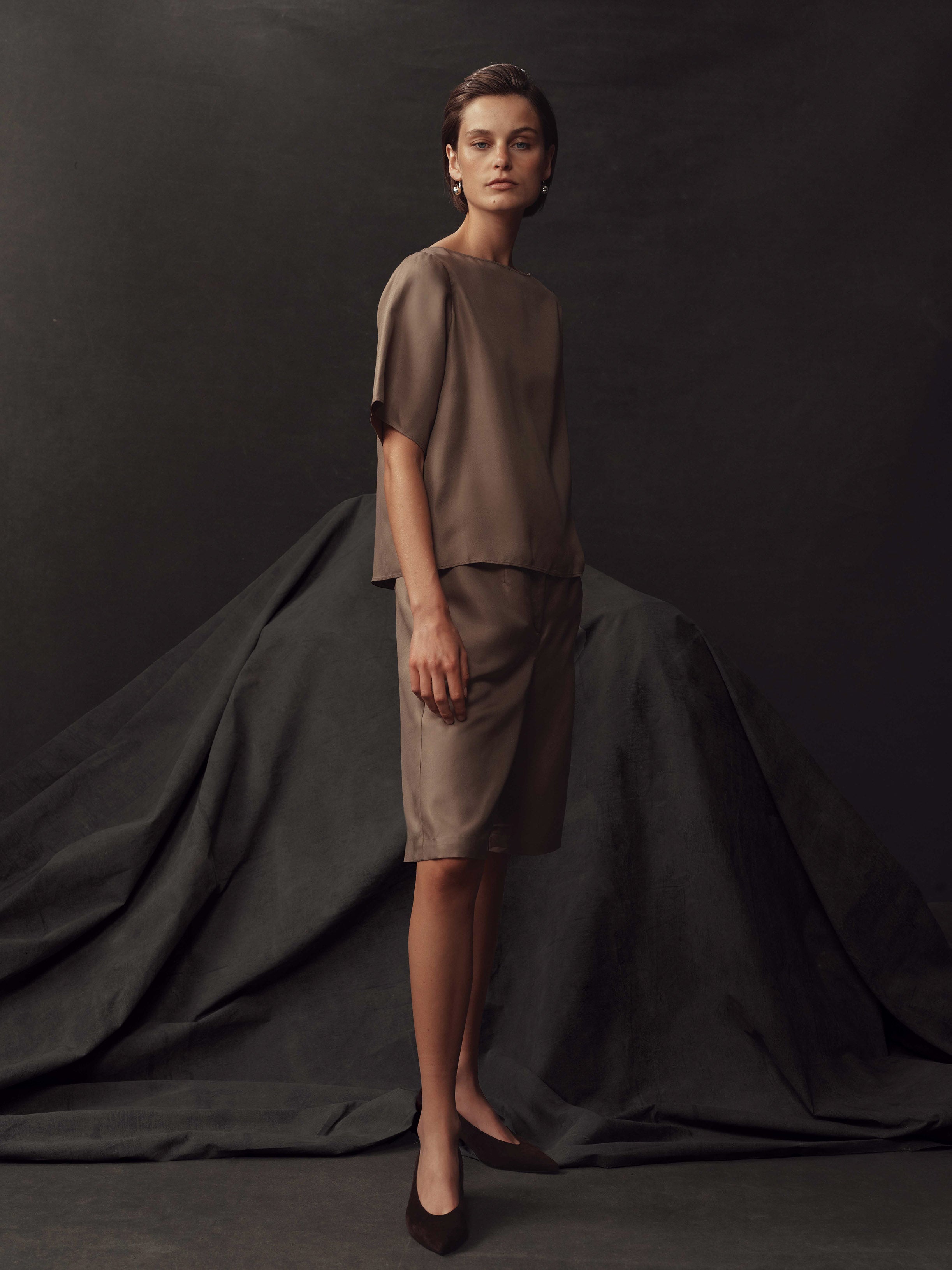 In this release we reiterate some favourites in the Kahlo skirt, the boat neck top, the bodice top and the classic shirt. New inclusions are the Maria range consisting of an elegant straight fit short, a louche keyhole back dress with hand pockets, exquisite hand-embroidered details and rouleau ties with custom brass details and finally a tunic-necked blouse in the same conception. All garments are slowly crafted and deftly express the dupioni’s character - lively, fresh, organic and like all of us, just a bit slubby.