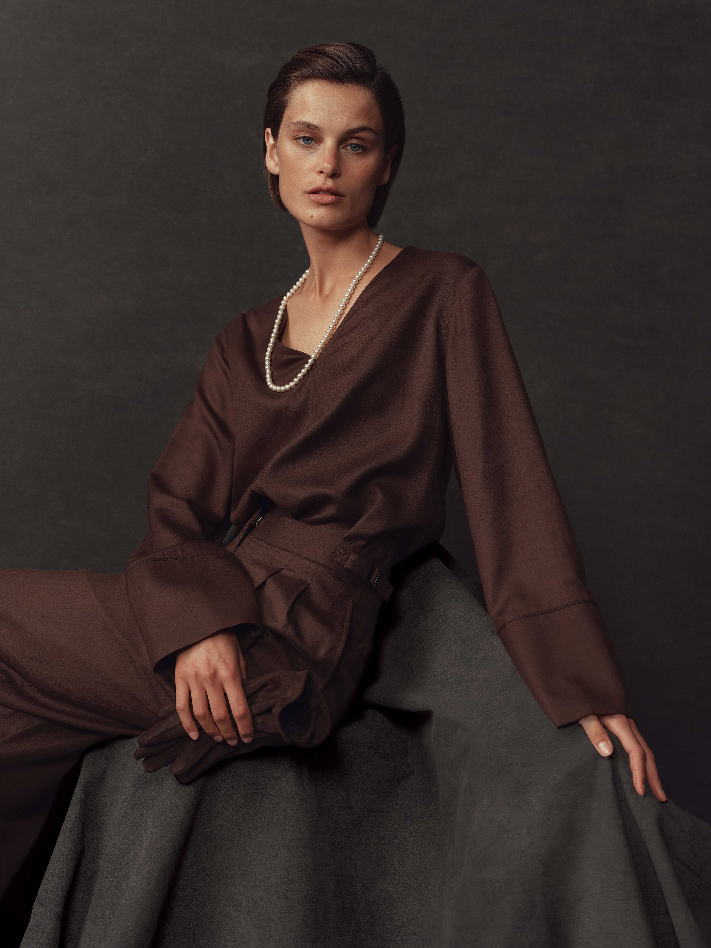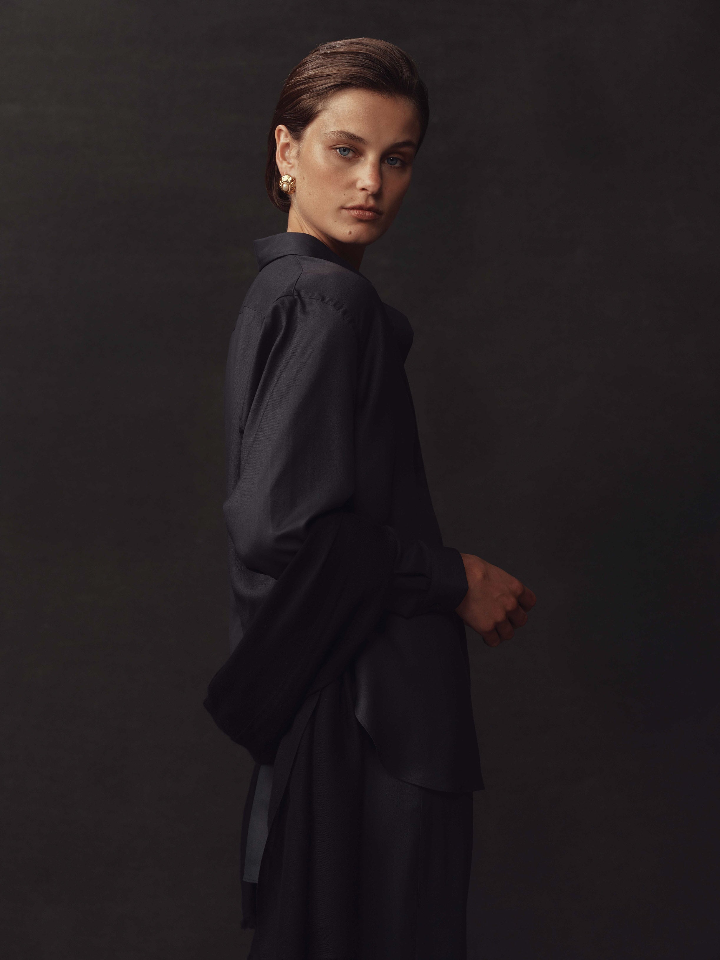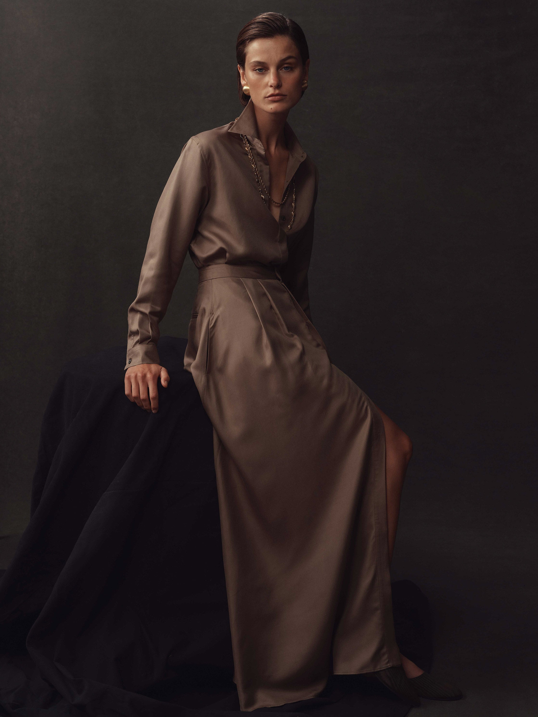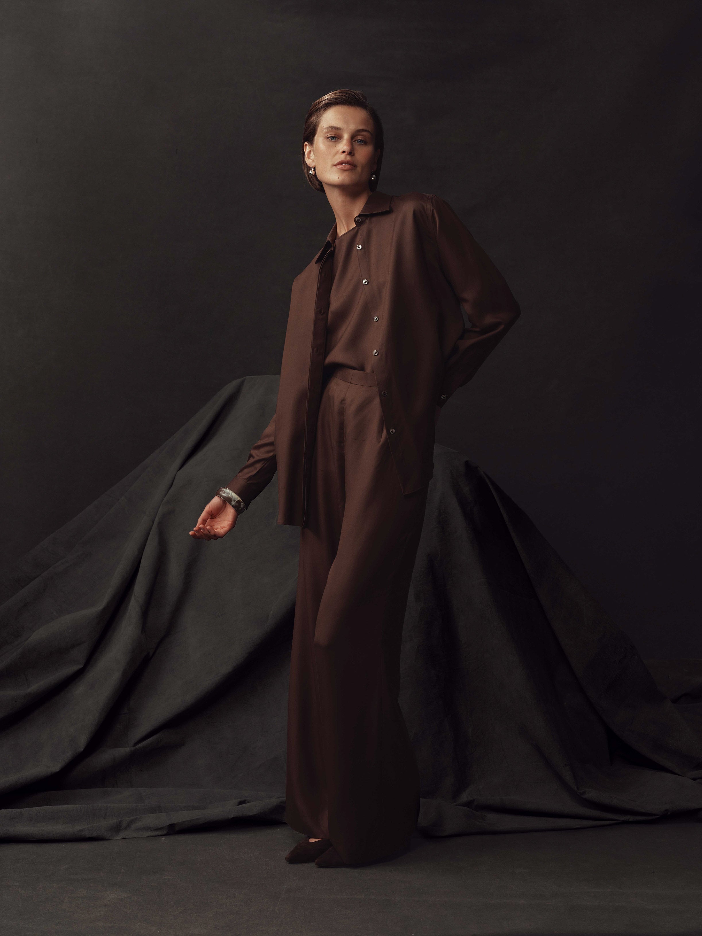 In this release we reiterate some favourites in the Kahlo skirt, the boat neck top, the bodice top and the classic shirt. New inclusions are the Maria range consisting of an elegant straight fit short, a louche keyhole back dress with hand pockets, exquisite hand-embroidered details and rouleau ties with custom brass details and finally a tunic-necked blouse in the same conception. All garments are slowly crafted and deftly express the dupioni’s character - lively, fresh, organic and like all of us, just a bit slubby.