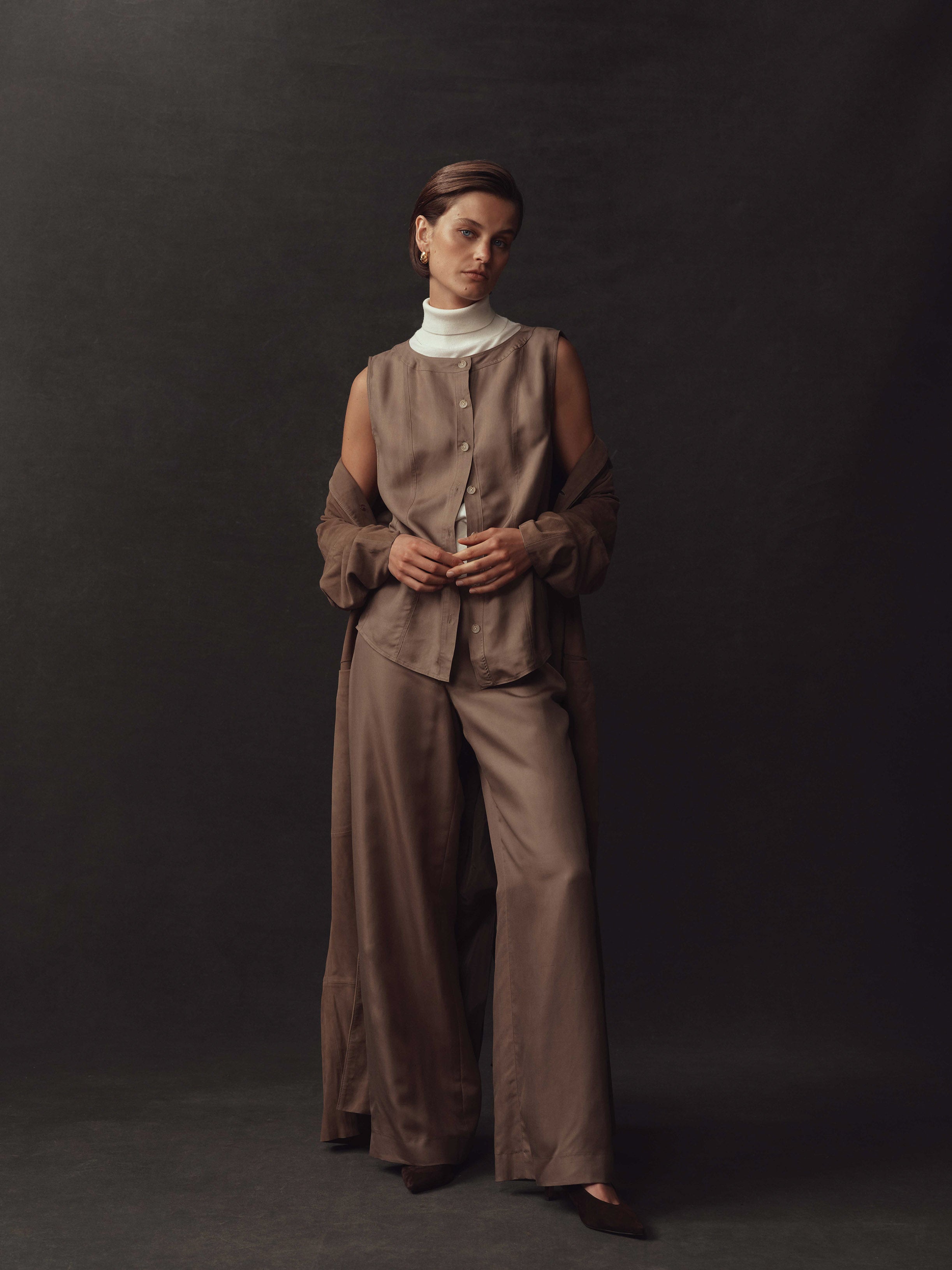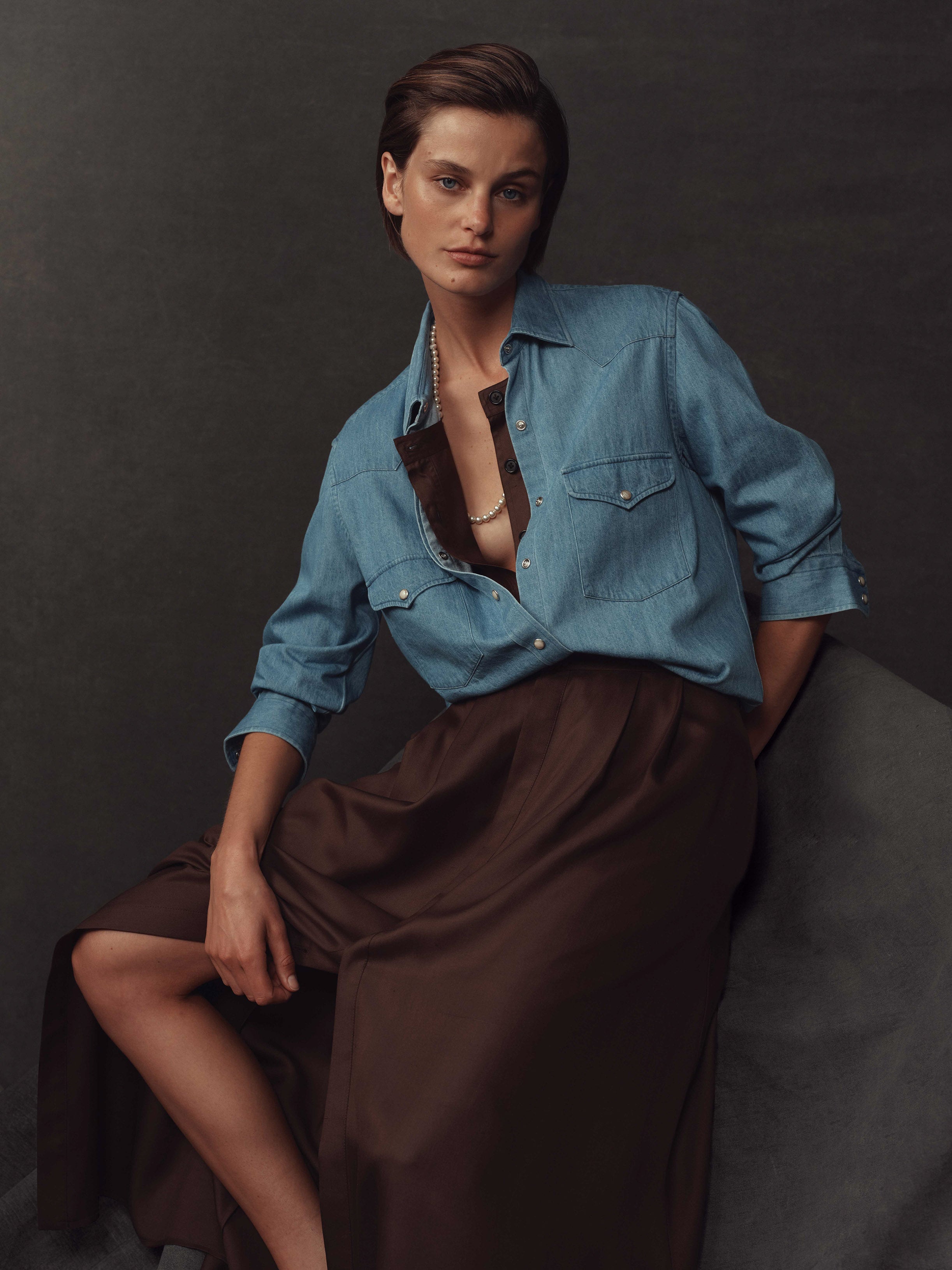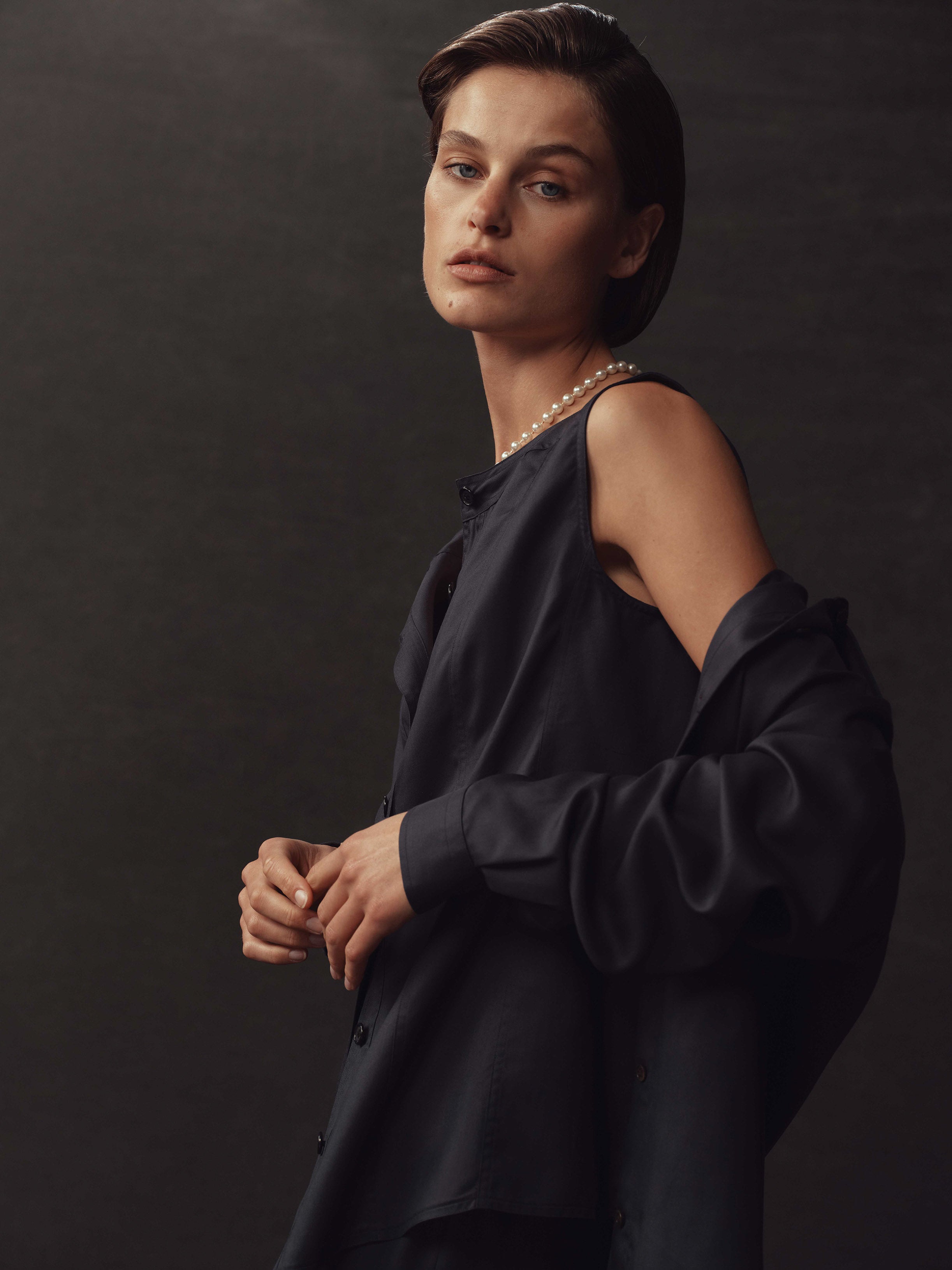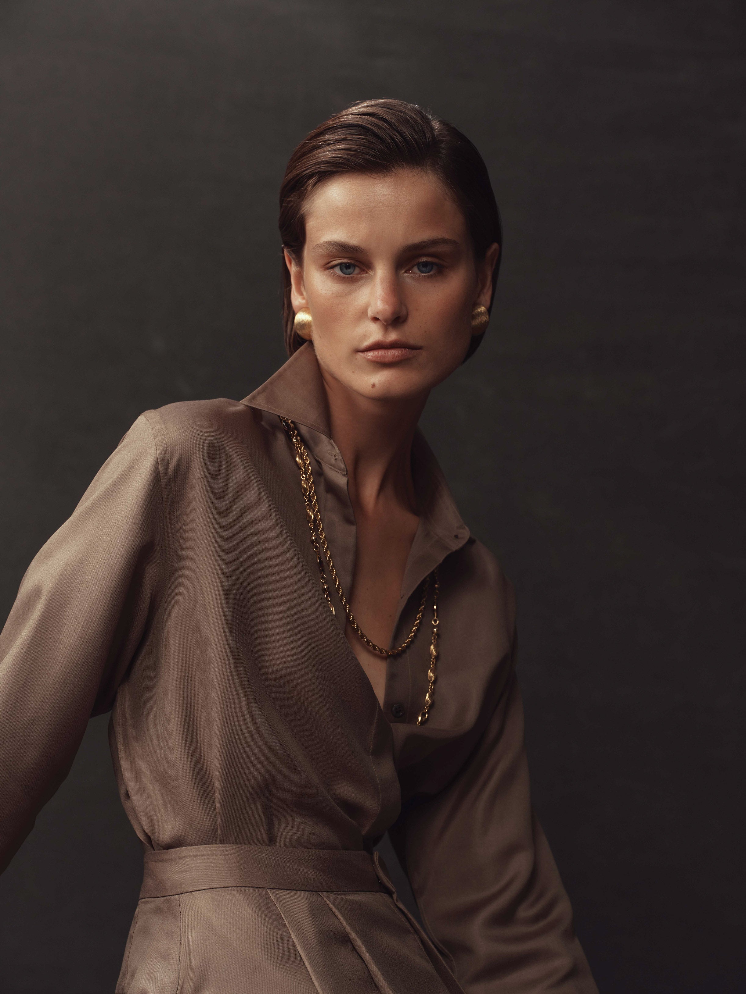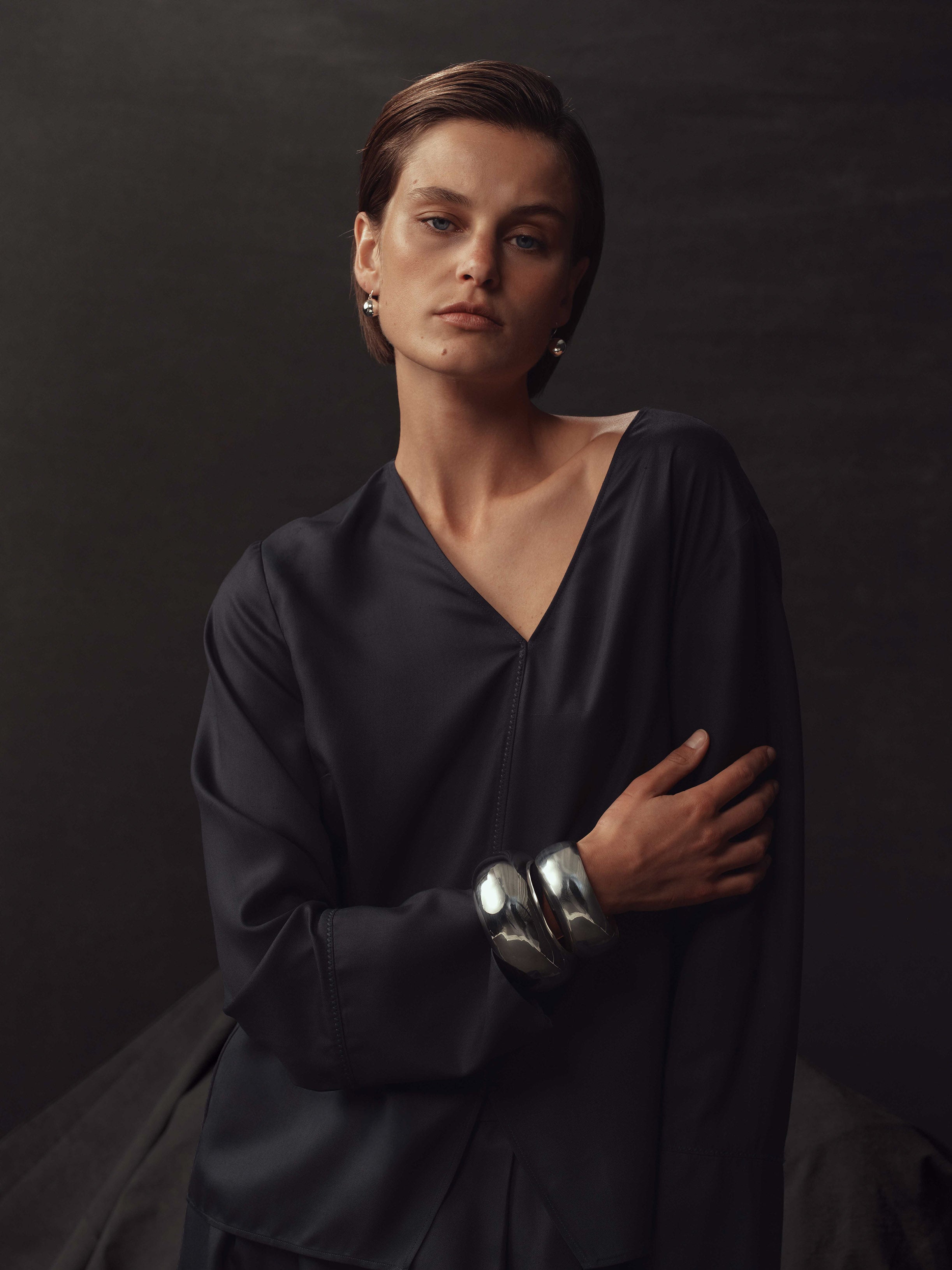 In this release we reiterate some favourites in the Kahlo skirt, the boat neck top, the bodice top and the classic shirt. New inclusions are the Maria range consisting of an elegant straight fit short, a louche keyhole back dress with hand pockets, exquisite hand-embroidered details and rouleau ties with custom brass details and finally a tunic-necked blouse in the same conception. All garments are slowly crafted and deftly express the dupioni’s character - lively, fresh, organic and like all of us, just a bit slubby.