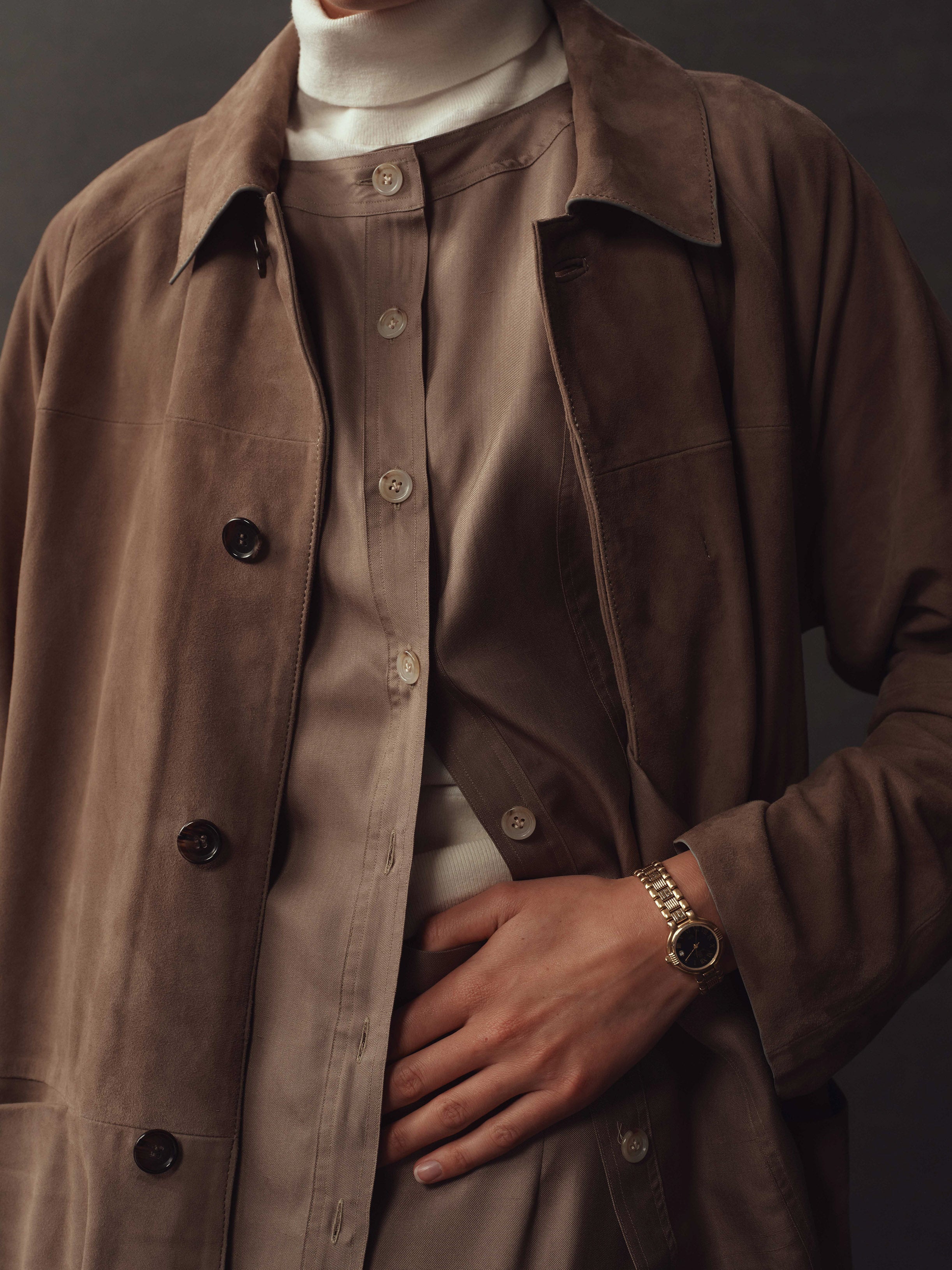 Our dupioni is a looser network open-weave type, creating a more dynamic drape and great ventilation. As a result we can employ the fabric across many types of garment. It is simply glorious to wear and has become a P Johnson staple. It is strangely versatile for silk, particularly elevated when needed and yet necessarily routine at the same time.