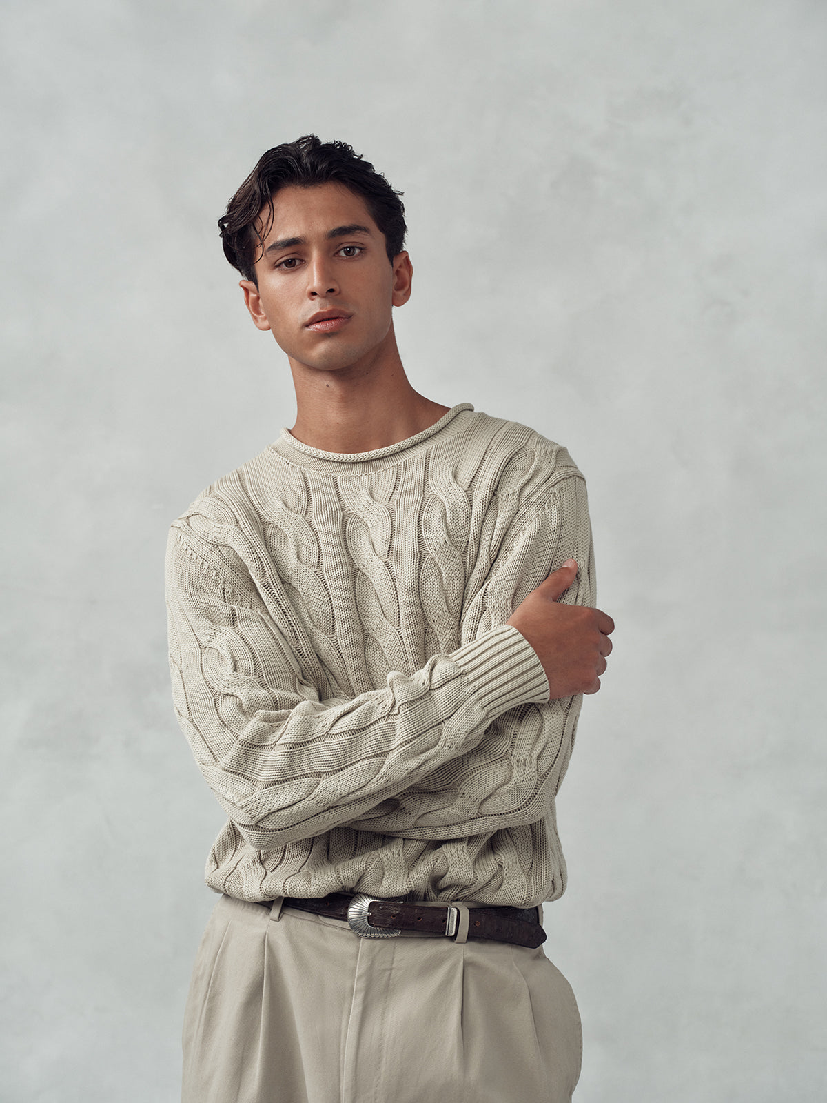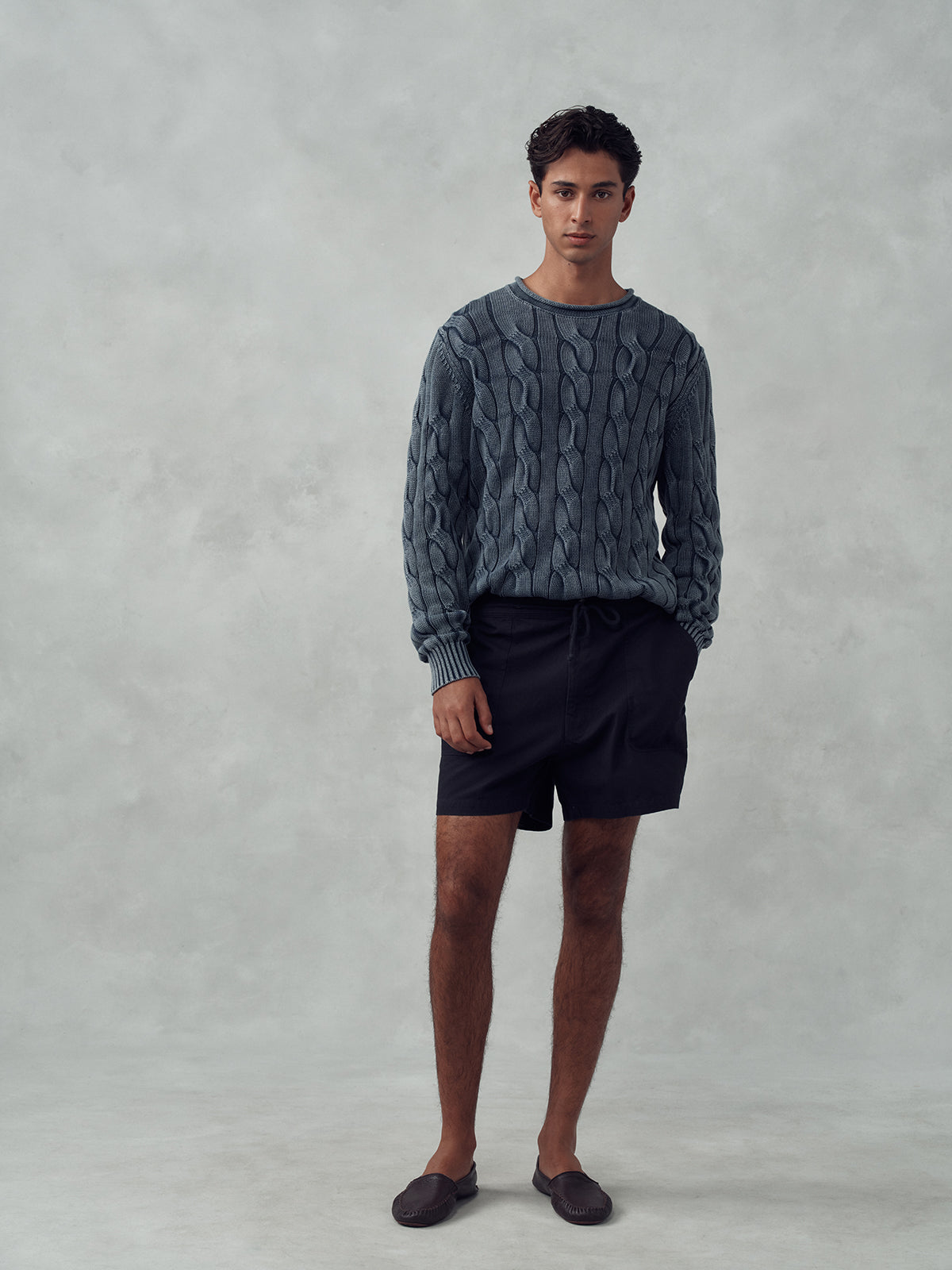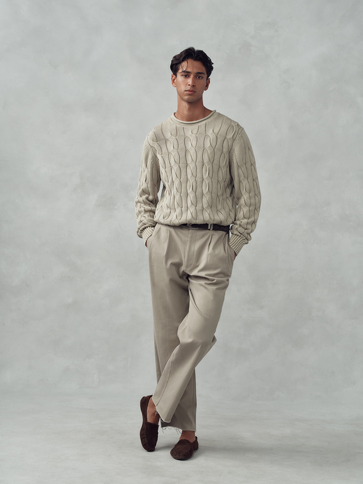 In knitwear there is the new crew-neck Yachtie sweaters, with their washed-out cable knit partners and we’ve brought back the popular knitted linen polos and sweaters in new colours too. The five pocket chino is back but different with a fraction more rise, a straighter leg and is made in a beautiful washed canvas in four colours.