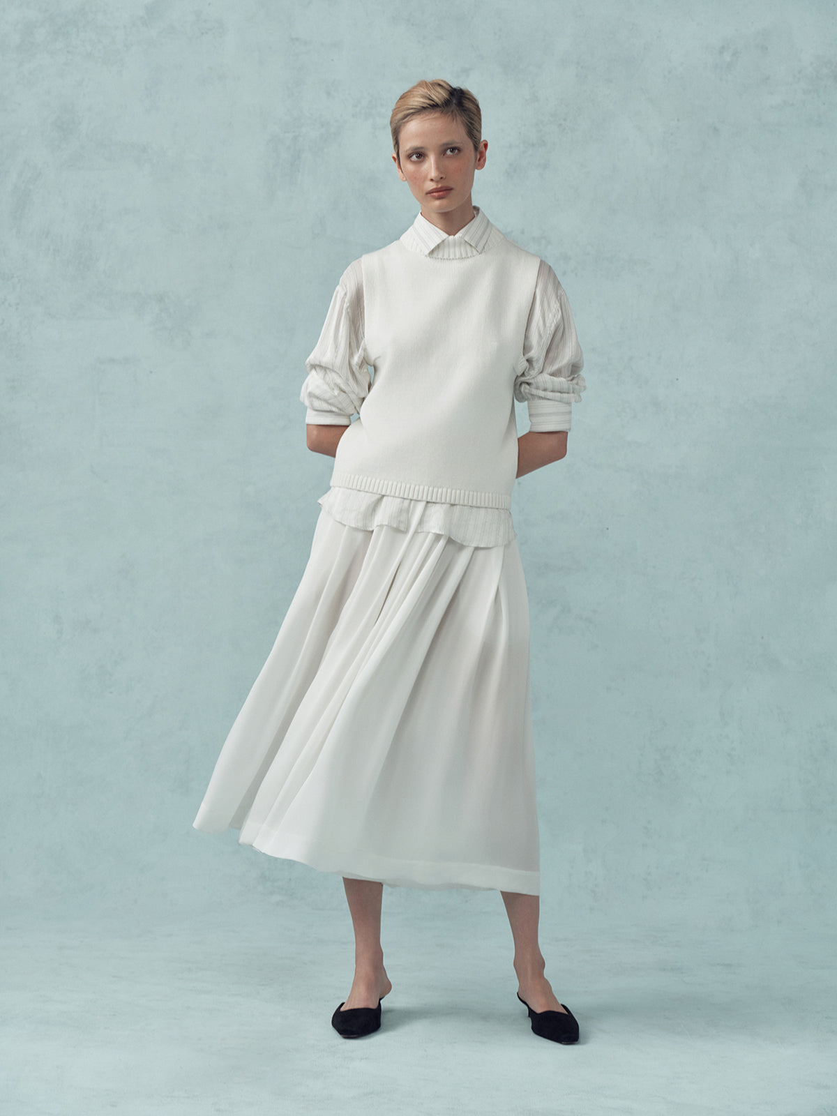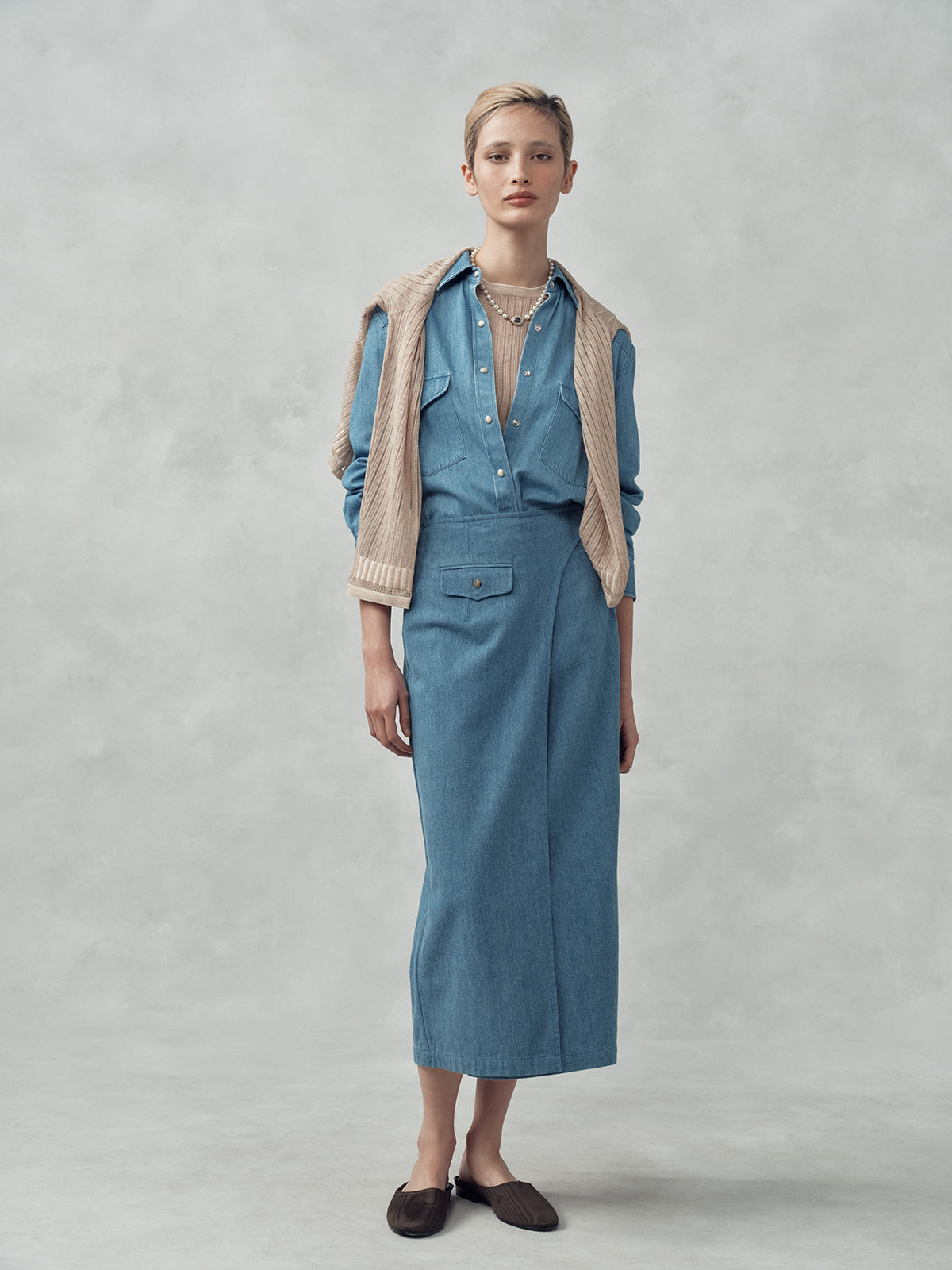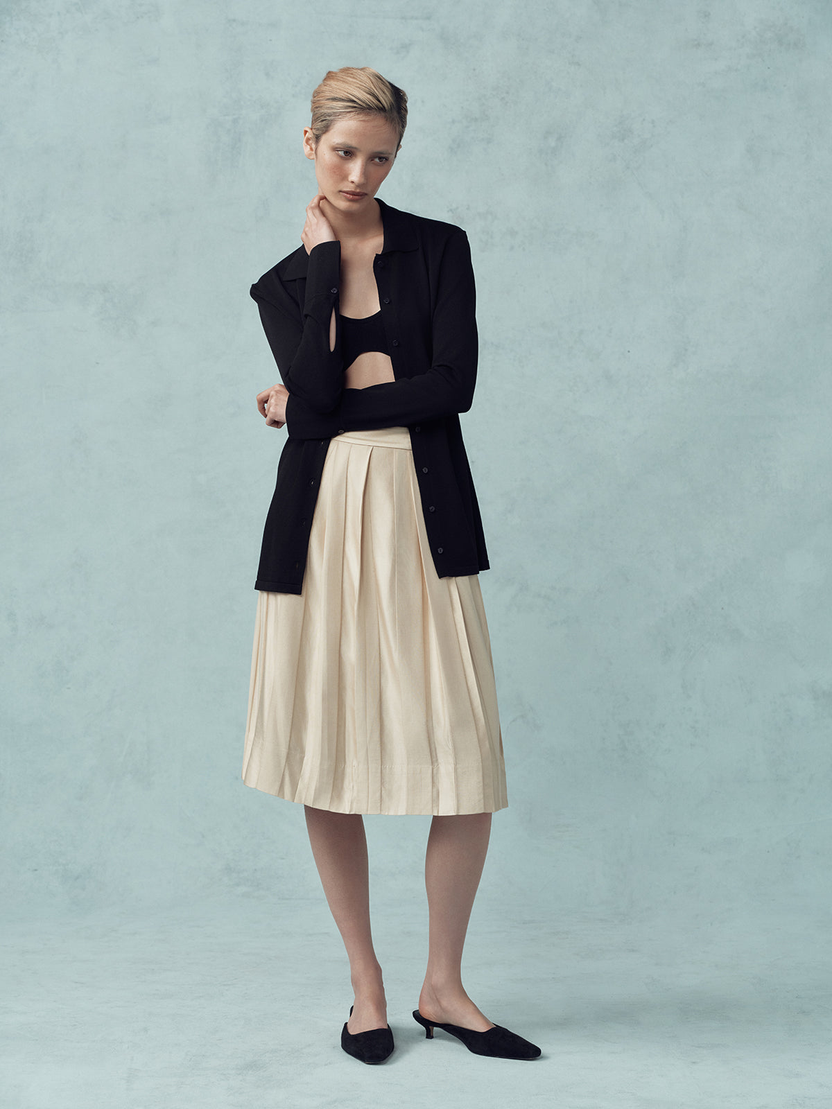 Of course there is plenty of very versatile knitwear and more casual tunes in the denim Kim skirt, June series, Cass culottes and revisits such as the Colette tunic top and short. Lest we mention tailoring… It is all there, progressive, permanent and pure.