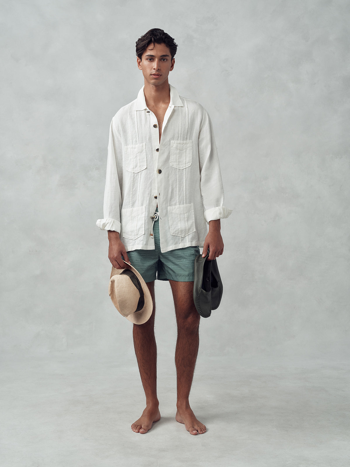 Go troppo and head to Cuba. The Havana shirt is a soft emulation of the guayabera shirt fashioned from a Japanese linen and features a hidden interior pocket for the buzzer and cute turtle-emblazoned buttons reminding you to pump the brakes in life. It also comes in denim and looks great with your favourite PJ swimmers.
