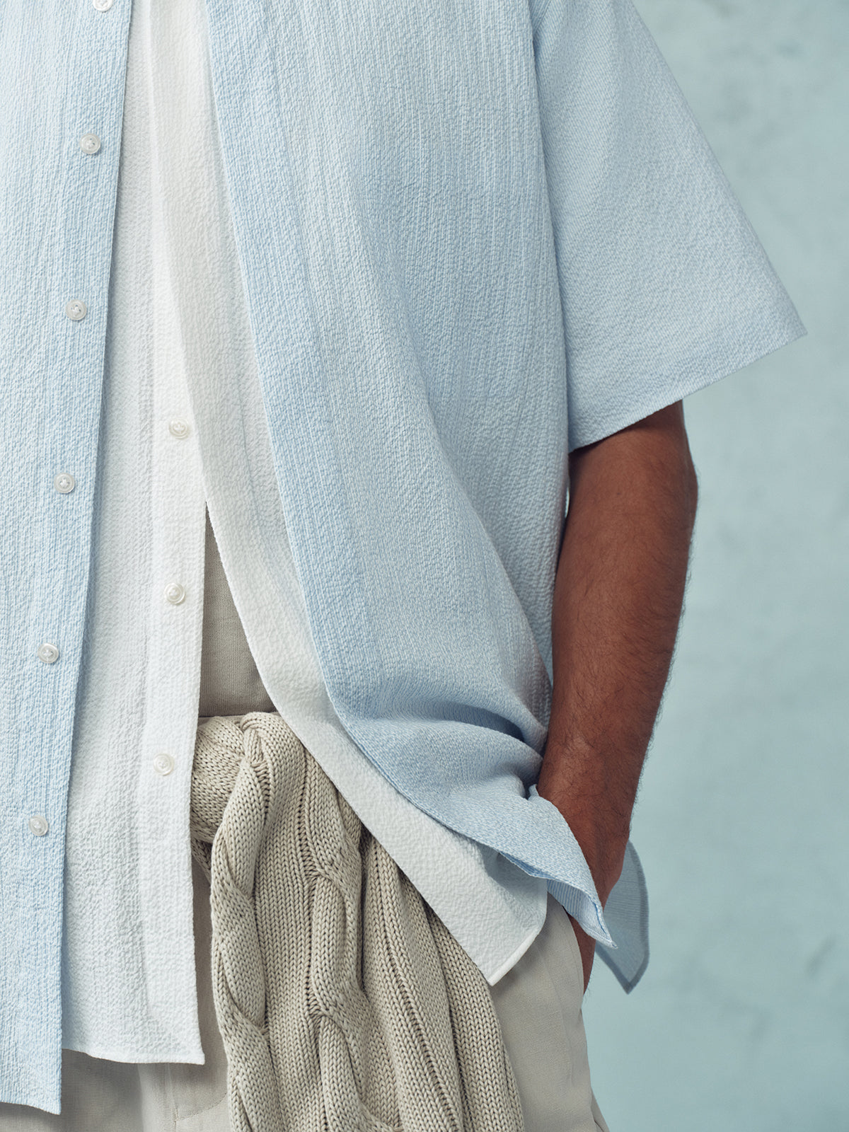 You may have noticed the rise of lavenders and lilacs? Maybe? Well for jacaranda lovers we have re-issued the spray jackets in two fresh shades on the violet-hue side. These make a very chic styling piece and add lift to your kit. While we are talking lavender, our favourite ice cotton tees are coming back in, well, lavender, ‘greige’ and ‘seafoam’ whatever that is. While we are on ice cotton, we have a newcomer, the ice cotton button up shirt, a piece of fully-fashioned knitting mastery with great appeal (sex appeal even?).